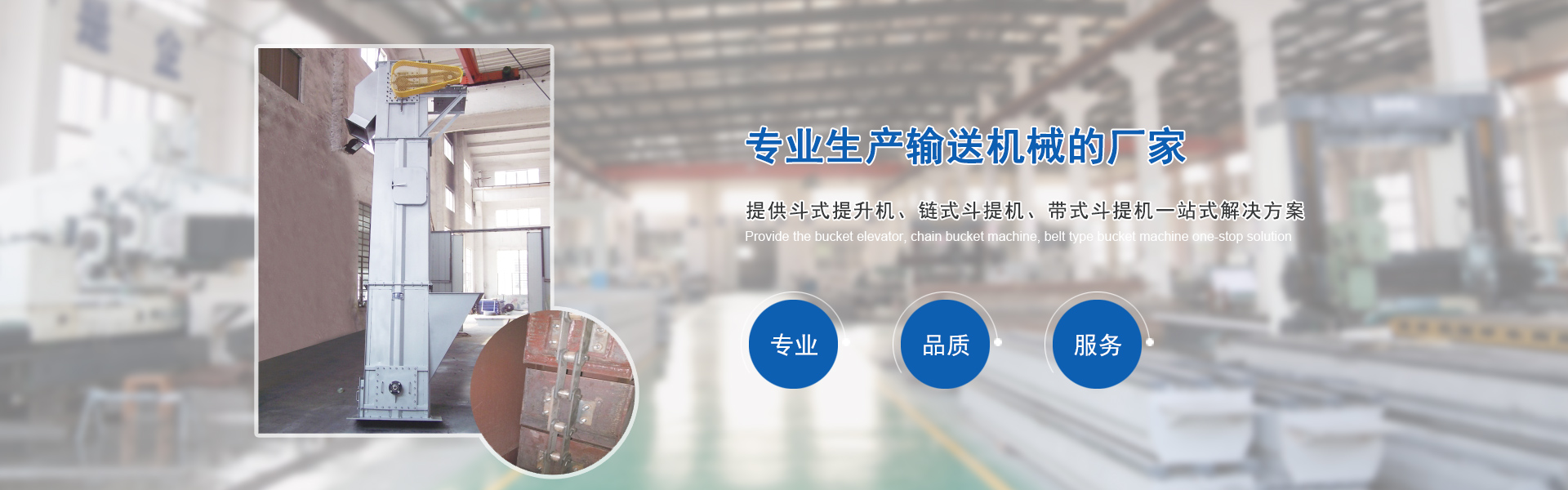 我們是專業(yè)生產(chǎn)輸送機(jī)械的廠家,主要產(chǎn)品有各種型號(hào)的斗式提升機(jī)、鏈?zhǔn)蕉诽釞C(jī)、帶式斗提機(jī)、螺旋輸送機(jī)、刮板輸送機(jī)、鏈斗輸送機(jī)、皮帶輸送機(jī)、